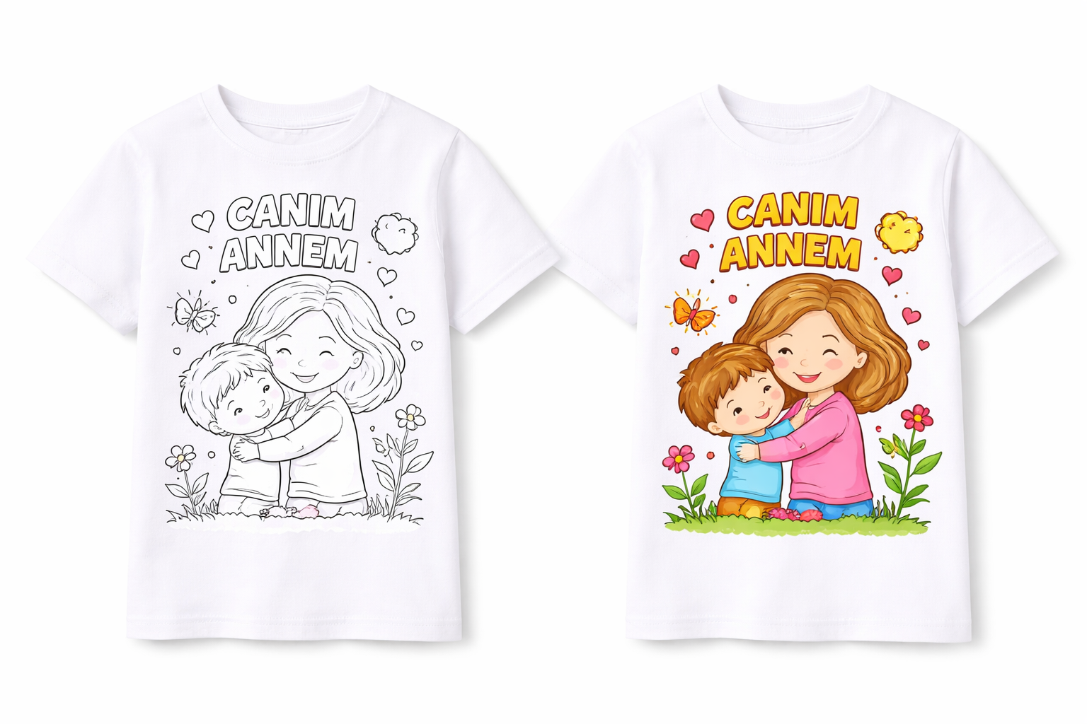 🖍️ Boyanabilir özel tasarım (kalemle renklendirilebilir, kalemler dahil değildir sadece baskılı tişört fiyatımızdır.)
