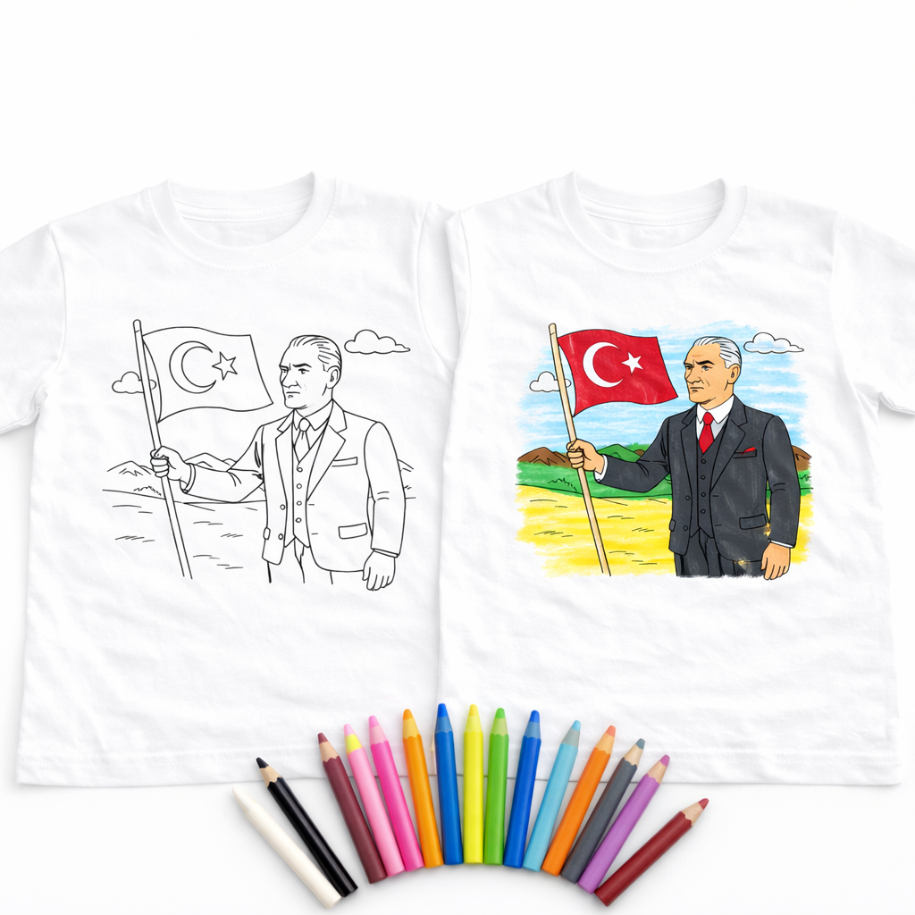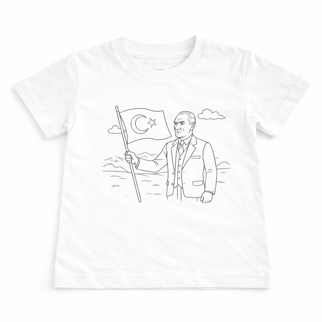 Bu özel tasarım tişört, çocukların hem eğlenmesini hem de kendi tarzını oluşturmasını sağlar. Üzerindeki boyanabilir Atatürk desen sayesinde çocuklar tişörtlerini istedikleri gibi renklendirerek kendilerine özel bir tasarım ortaya çıkarır.👧👦 Eğlenerek öğrenme + yaratıcılık + özgüven tek üründe!