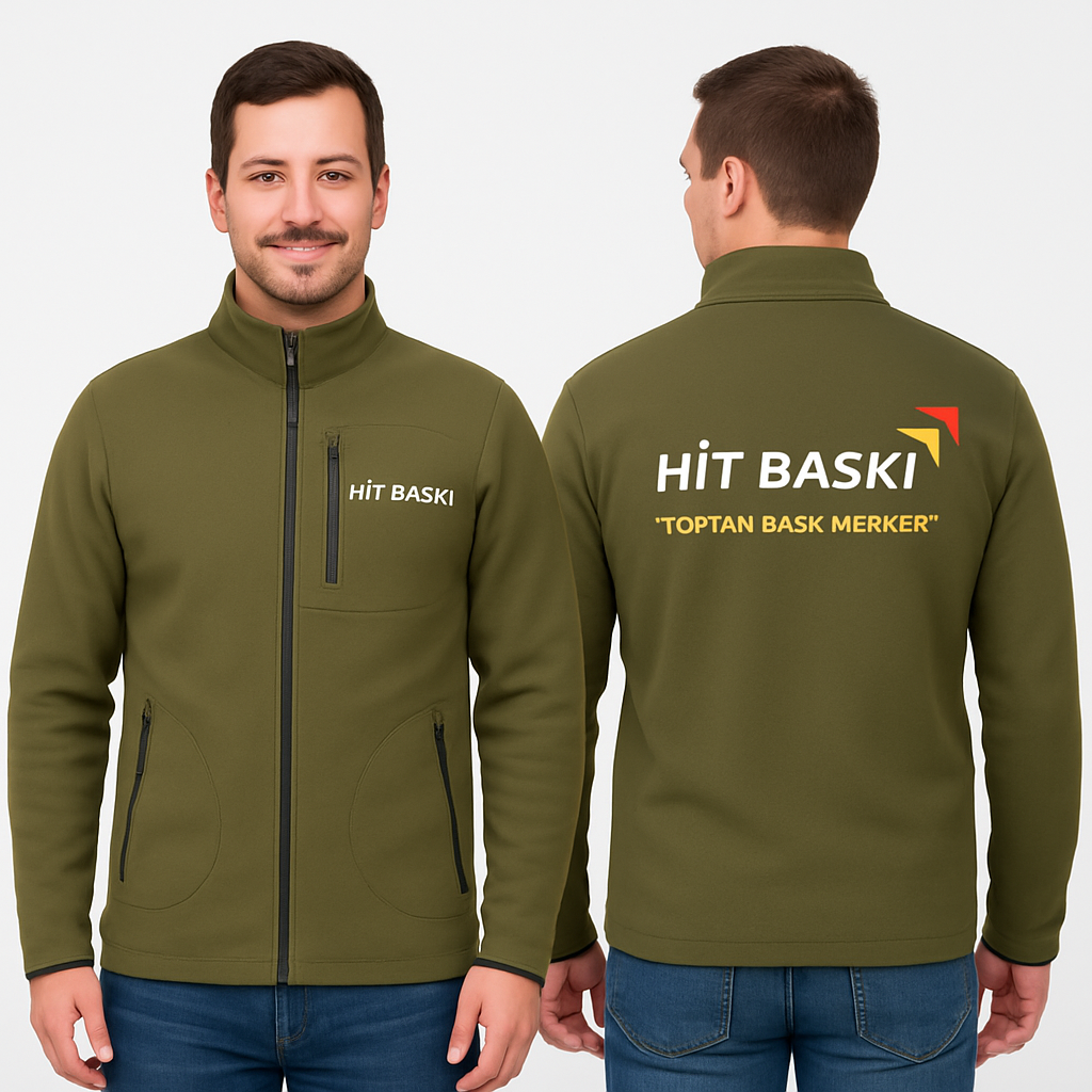 Firmalara Özel Tasarım Yazı, LOGO, Resim Baskılı Unisex Haki Polar.