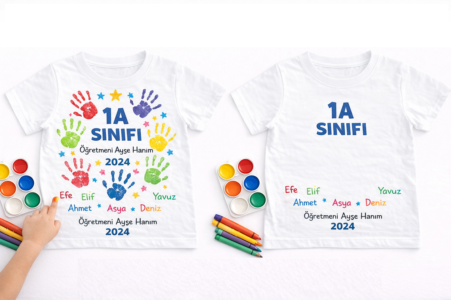 “Sınıf Hatırası Boyanabilir Çocuk Tişörtü – Parmak Baskı Etkinlik Tişörtü (Okul & Anaokulu Özel)” için yorum yapan ilk kişi siz olun