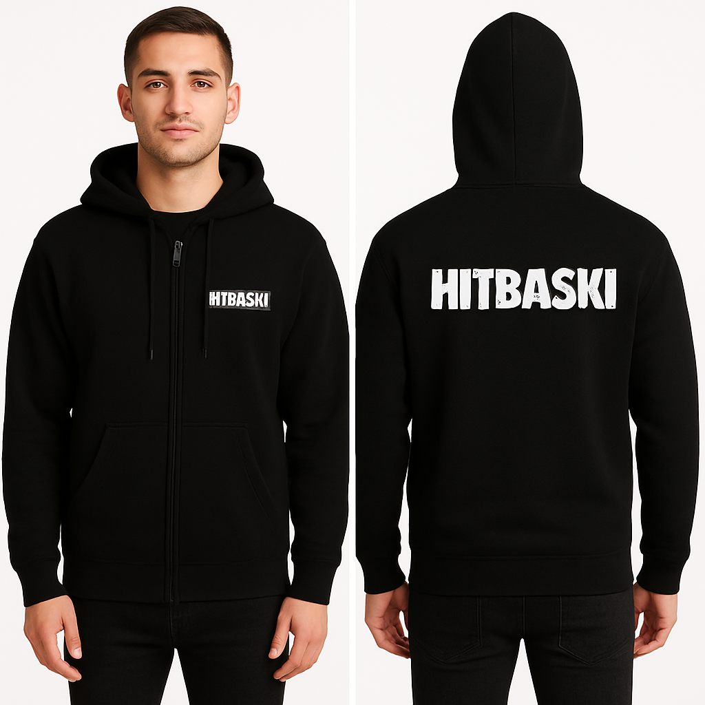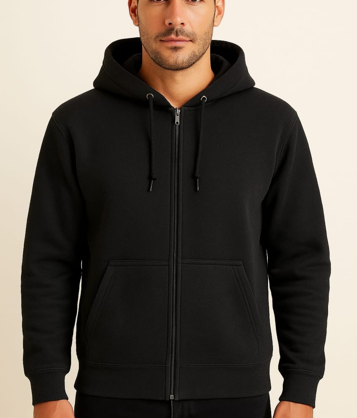 Siyah Fermuarlı Hoodie Kapüşonlu Sweatshirt Pamuklu Toptan Baskılı Baskısız 3 iplik